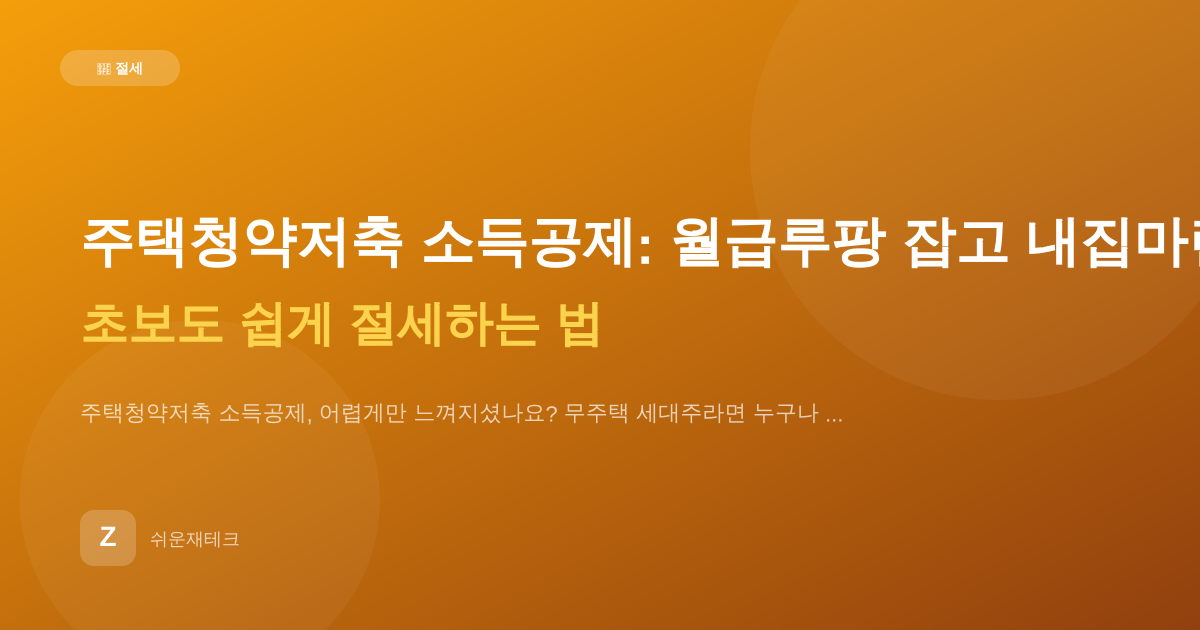 절세·세금주택청약저축 소득공제: 월급루팡 잡고 내집마련까지! 초보도 쉽게 절세하는 법