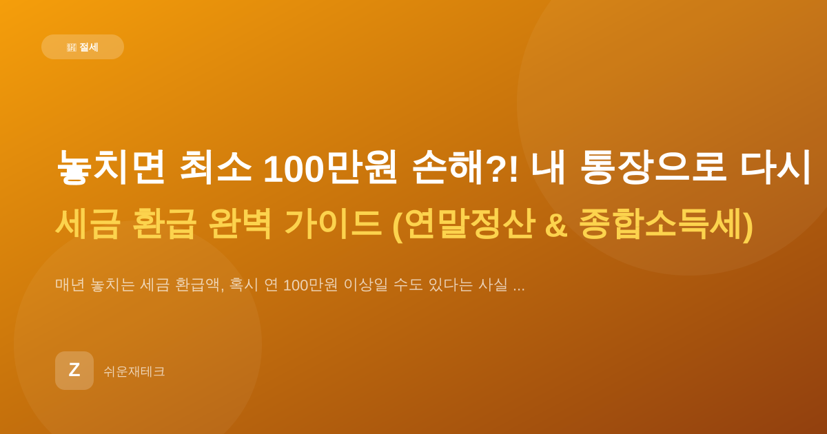 절세·세금놓치면 최소 100만원 손해?! 내 통장으로 다시 돌아오는 세금 환급 완벽 가이드 (연말정산 & 종합소득세)