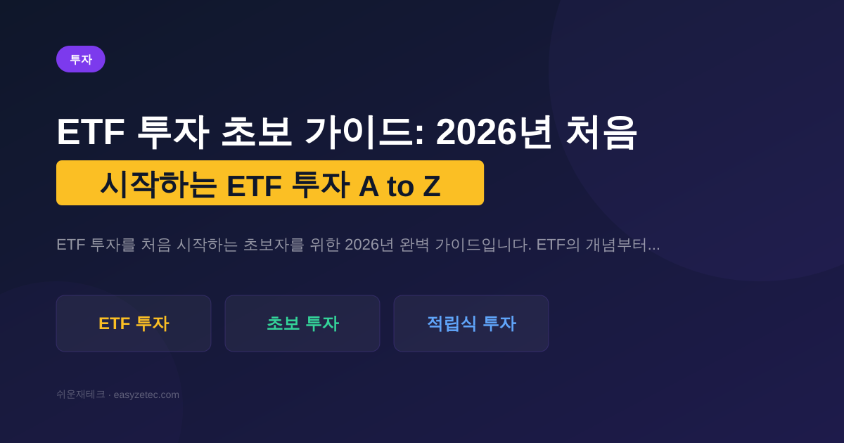 투자·주식ETF 투자 초보 가이드: 2026년 처음 시작하는 ETF 투자 A to Z