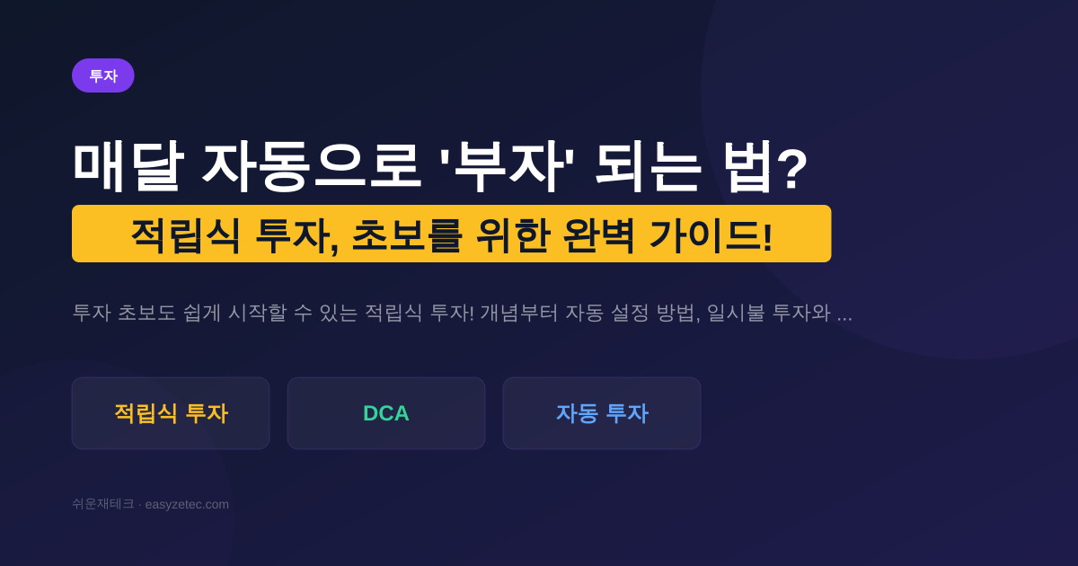 투자 초보도 쉽게 시작할 수 있는 적립식 투자! 개념부터 자동 설정 방법, 일시불 투자와 비교, 그리고 성공을 위한 5가지 원칙까지 '쉬운재테크'에서 모두 알려드립니다.