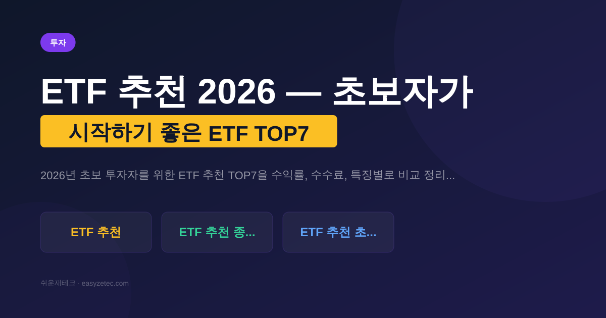 투자·주식ETF 추천 2026 — 초보자가 시작하기 좋은 ETF TOP7