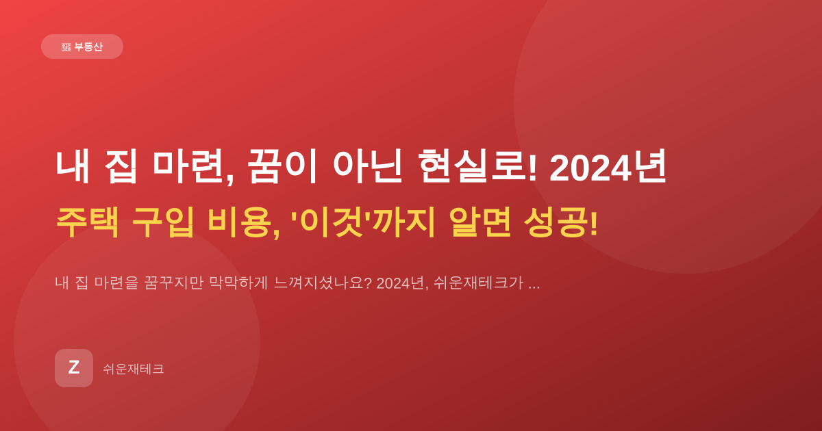 부동산내 집 마련, 꿈이 아닌 현실로! 2024년 주택 구입 비용, '이것'까지 알면 성공!