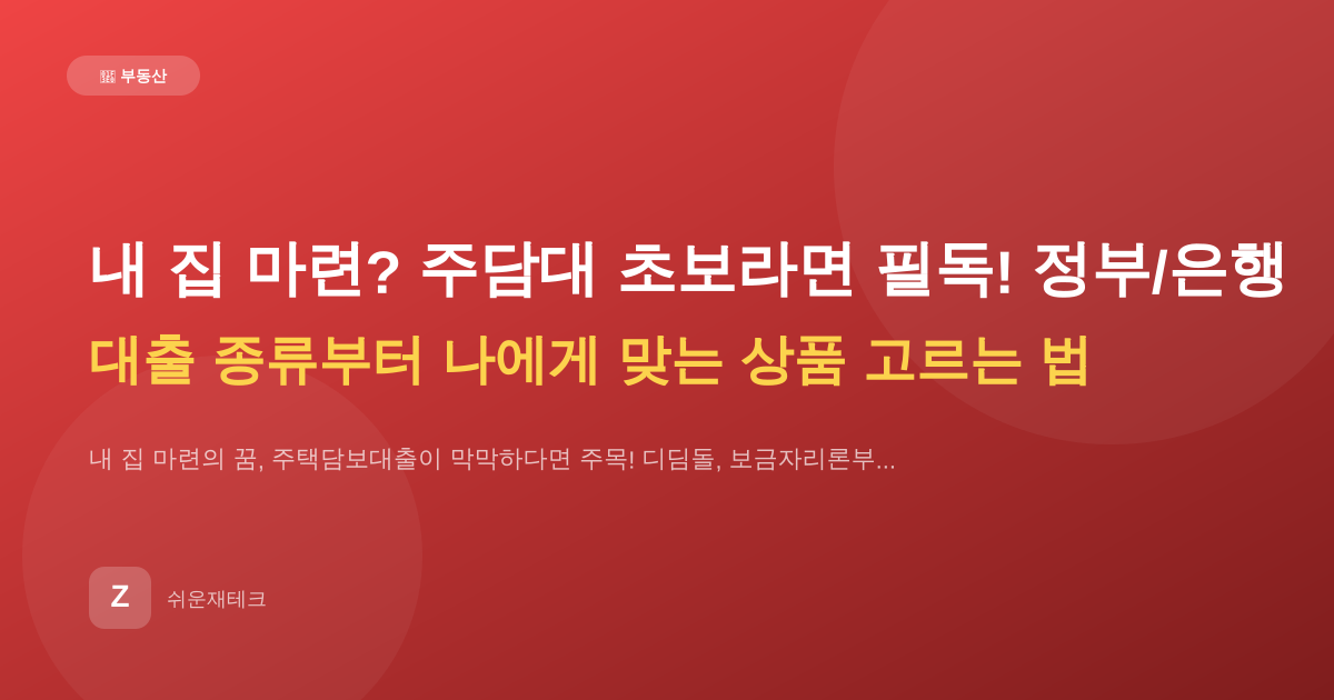 부동산내 집 마련? 주담대 초보라면 필독! 정부/은행 대출 종류부터 나에게 맞는 상품 고르는 법