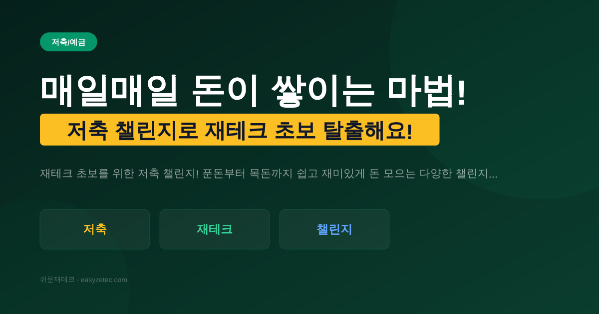 저축·예금매일매일 돈이 쌓이는 마법! 저축 챌린지로 재테크 초보 탈출해요!