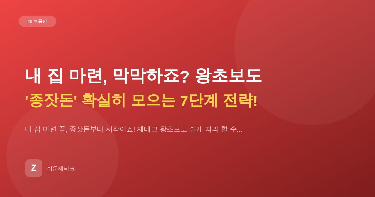 내 집 마련 꿈, 종잣돈부터 시작이죠! 재테크 왕초보도 쉽게 따라 할 수 있는 구체적인 7단계 종잣돈 모으기 전략과 실용적인 팁을 '쉬운재테크'가 알려드려요.