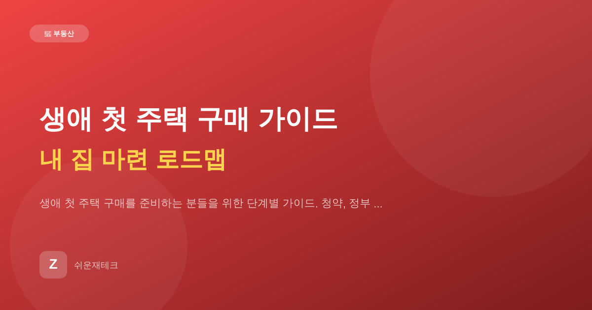 생애 첫 주택 구매, 무엇부터 시작해야 할지 막막하다면? 쉬운재테크가 예산 계획부터 정부 지원 대출, 청약, 매물 탐색까지 초보를 위한 내 집 마련 로드맵을 제시합니다.