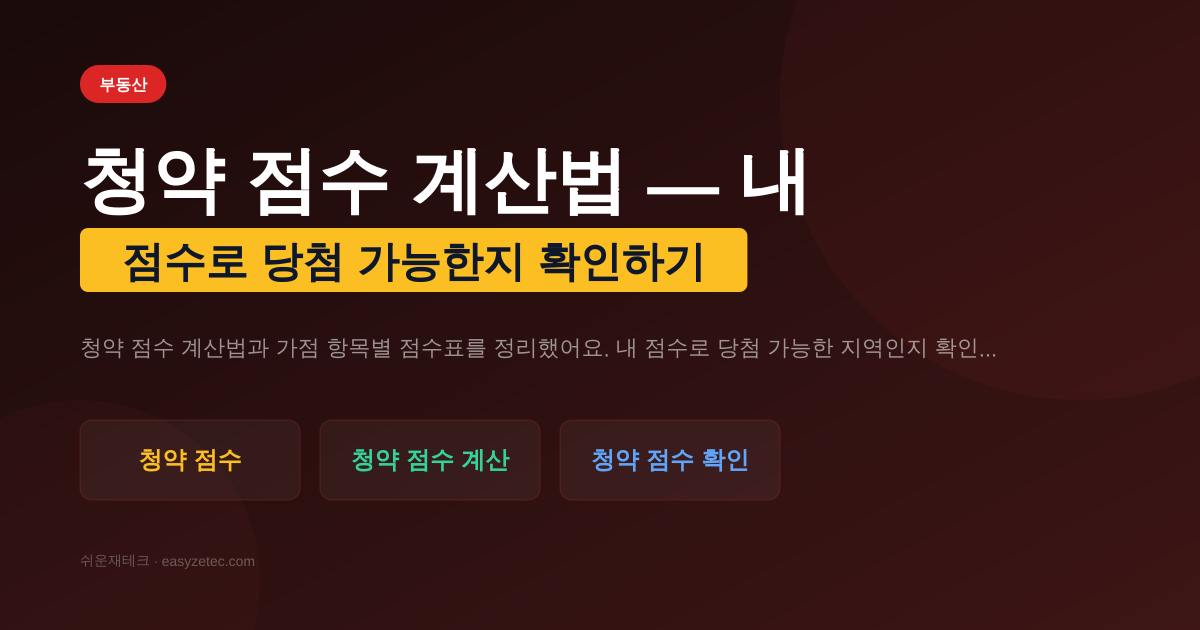 청약 점수 계산법과 가점 항목별 점수표를 정리했어요. 내 점수로 당첨 가능한 지역인지 확인하는 방법까지 알려드릴게요.