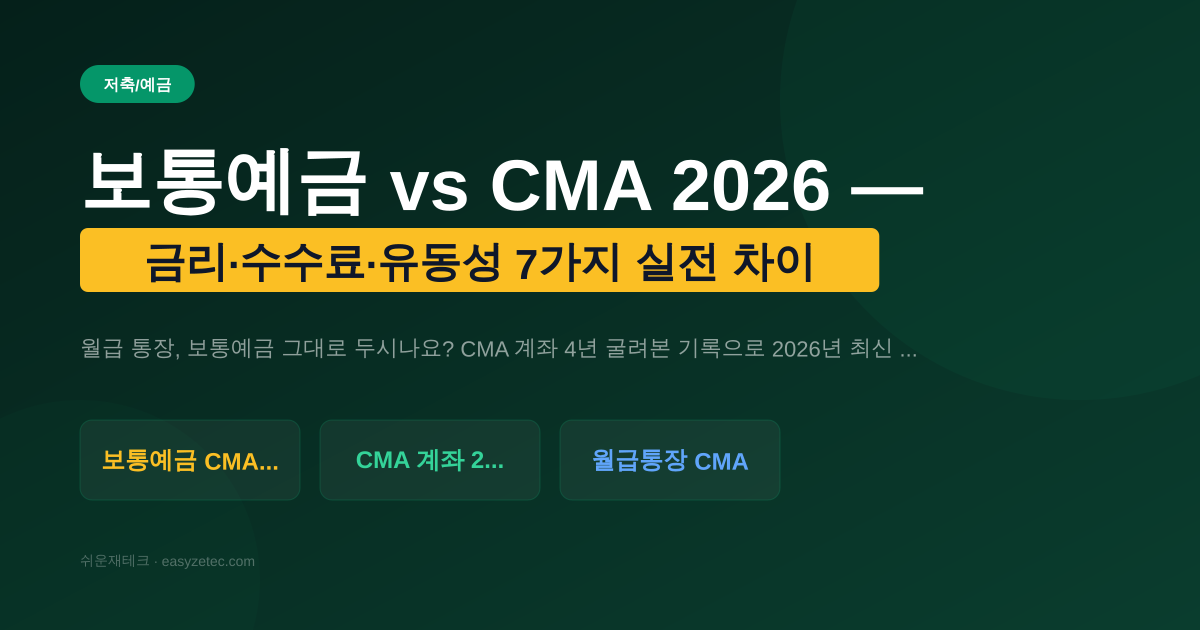 보통예금 vs CMA 2026 — 금리·수수료·유동성 7가지 실전 차이
