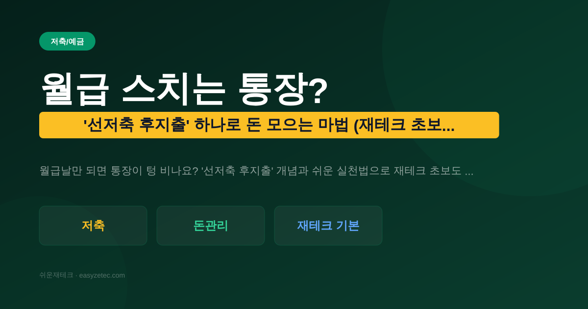 저축·예금월급 스치는 통장? '선저축 후지출' 하나로 돈 모으는 마법 (재테크 초보 필독!)