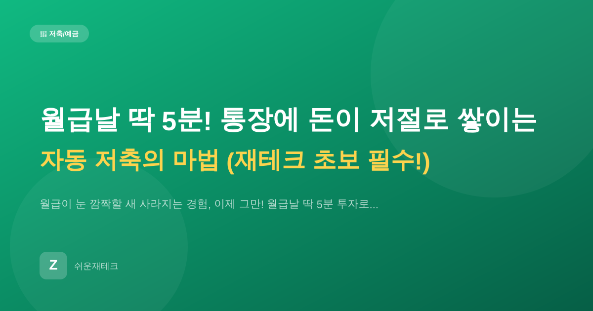 저축·예금월급날 딱 5분! 통장에 돈이 저절로 쌓이는 자동 저축의 마법 (재테크 초보 필수!)