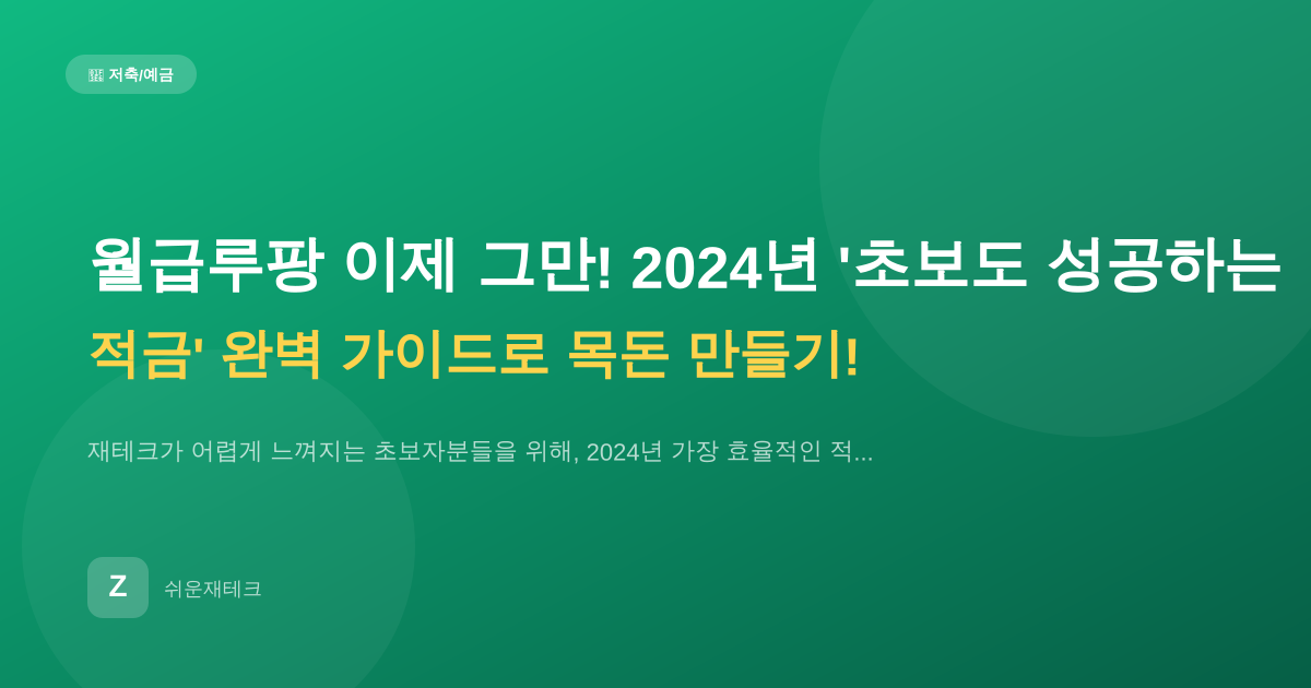 저축·예금월급루팡 이제 그만! 2024년 '초보도 성공하는 적금' 완벽 가이드로 목돈 만들기!