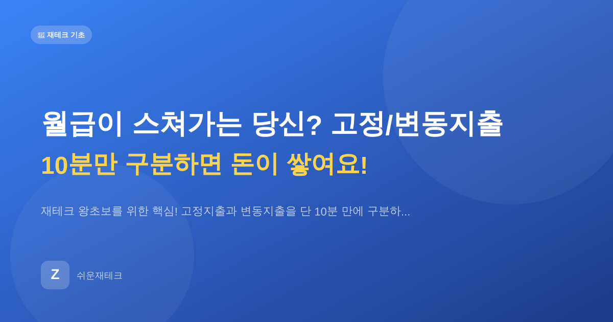재테크 왕초보를 위한 핵심! 고정지출과 변동지출을 단 10분 만에 구분하고 관리해서, 월급이 통장에 착! 붙어있게 만드는 쉬운 비법을 알려드립니다.