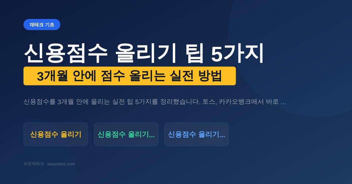신용점수를 3개월 안에 올리는 실전 팁 5가지를 정리했습니다. 토스, 카카오뱅크에서 바로 확인하고 개선할 수 있는 방법이에요.
